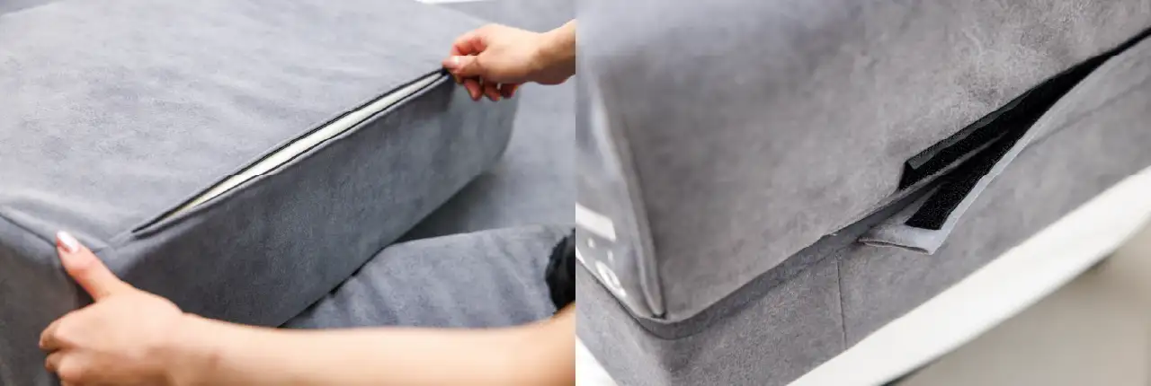 クッション材に「洗えるエコダウン(エアフレーク等)」を採用。いつでも洗って、においや汚れを残しません。
