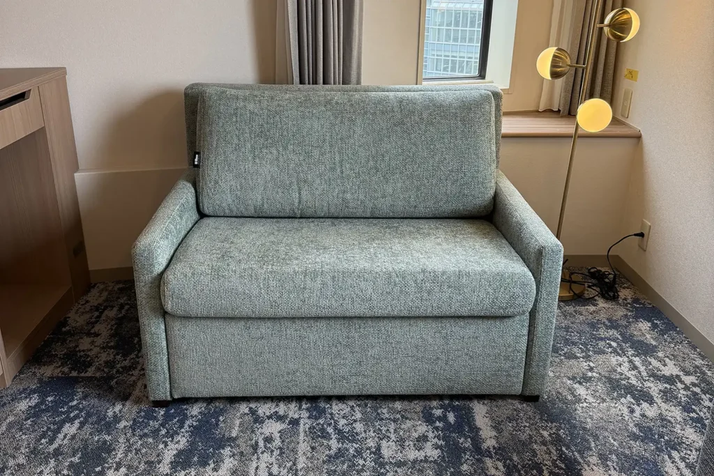 ■ 導入の経緯 各フロアに配された特別な客室への設置に向け、空間デザイナー様よりホテル様へSWANELのソファベッドをご提案いただきました。